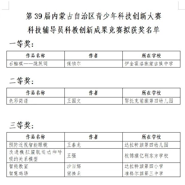 文章主题词: 获奖 青少年 佳绩 第39届 内蒙古自治区 青少年科技创新大赛 获奖