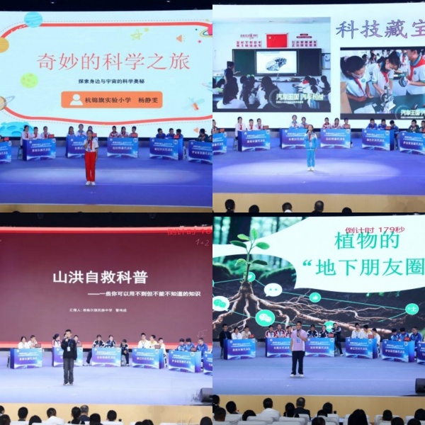 总决赛分为小学组和中学组,两组均设置“队伍风采展示”“科普演讲”“科普有我(必答题)”“你争我夺(抢答题)”“放手一搏(风险题)”五大环节,全面考验选手的科学素养与综合能力。在“队伍风采展示”环节,各代表队喊出铿锵口号,展现出蓬勃的精神面貌;“科普演讲”环节中,选手们精彩讲述科普故事,从自然奥秘到生活常识,生动传递科学知识,选手们表现各有亮点,尽显青少年科学风采。