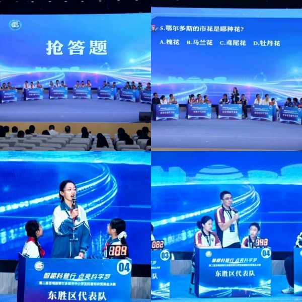 本次赛事由鄂尔多斯市科学技术协会和鄂尔多斯市教育体育局共同举办,以“智趣科普行 点亮科学梦”为主题,创新采用“线上+线下”结合模式,经过前期分赛与线上竞赛的层层筛选,来自各旗区的小学组、中学组共18支优秀代表队脱颖而出,站上总决赛舞台,展开一场兼具知识性与趣味性的比拼。