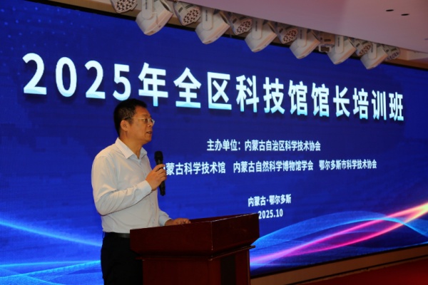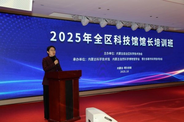 2025年10月22日至24日,由内蒙古自治区科学技术协会主办,内蒙古科学技术馆、内蒙古自然科学博物馆学会、鄂尔多斯市科学技术协会共同承办的“2025年全区科技馆馆长培训班”在鄂尔多斯市顺利举办。内蒙古科协党组成员、副主席额尔德尼出席开班仪式并致辞,鄂尔多斯市科协党组书记丁玲致欢迎辞,内蒙古科技馆馆长杜建峰主持开班仪式。全区各盟市科协、科技馆近百名负责人及业务骨干现场参训,500余人通过线上平台同步参训。